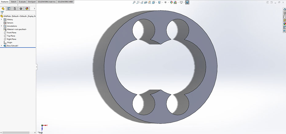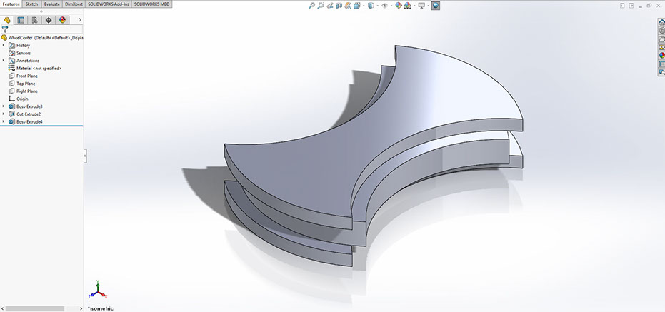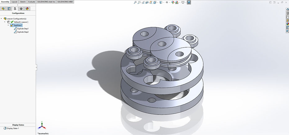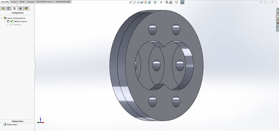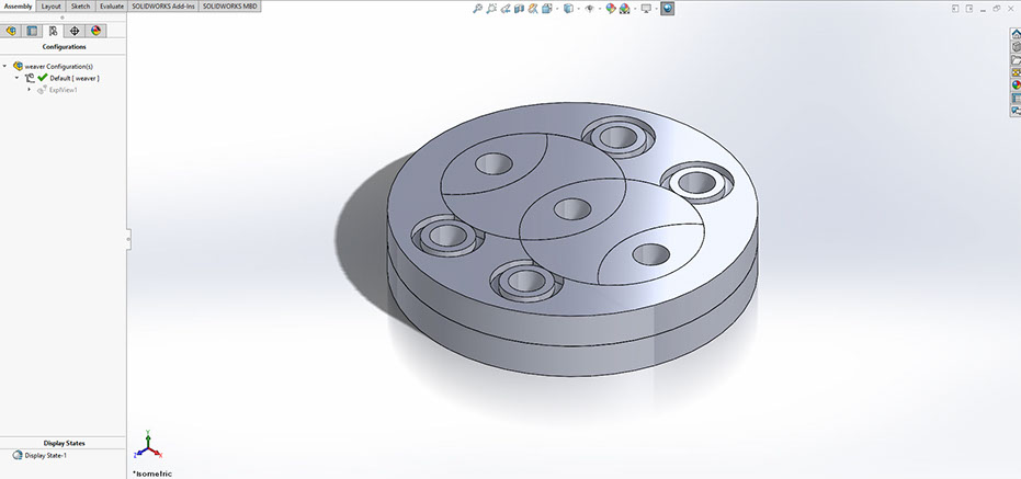 3 dies and 2 wheels are placed neatly into a centerplate, which is then sandwiched between two endplates.