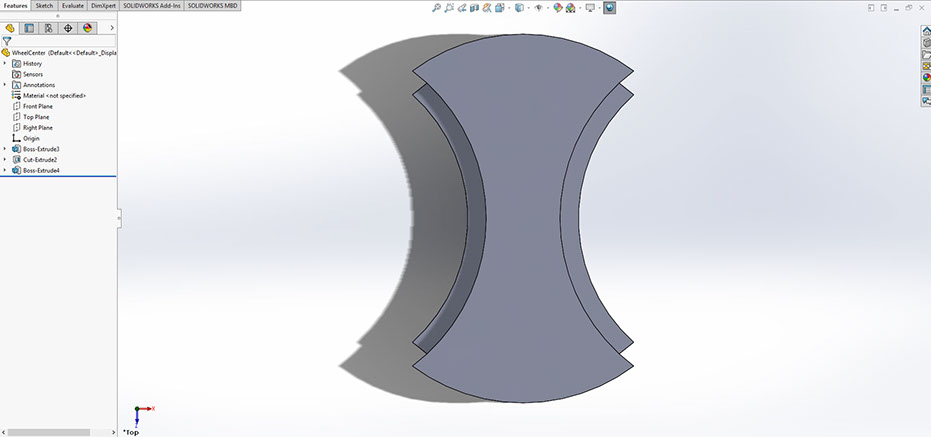 Centerplate with cutouts for wheels and dies.